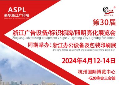 2024浙江办公设备及图文快印(春季)展览会 同期举办:(第30届)浙江广告技术设备及标识标牌(春季)博览会 展会时间:2024年 4月12-14日 展览地点:G20峰会主会场--杭州国际博览中心